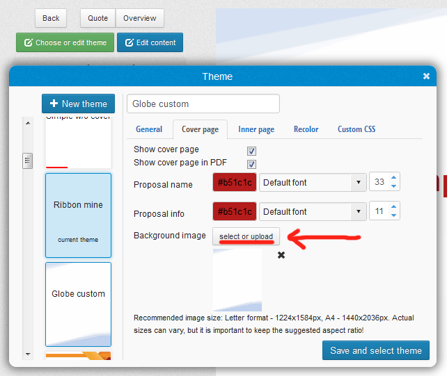 3) You can choose a background image in the left vertical panel. Then you can download this background image in the Cover page or Inner page tab.