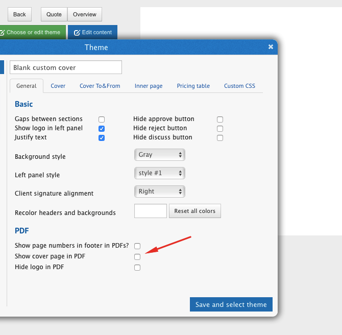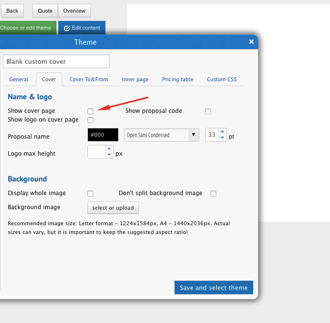 Custom or no cover page